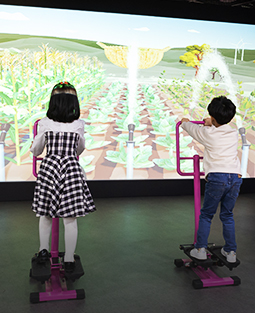 <뿜뿜! 펀 에너지>는 몸으로 에너지를 만들면서 신체활동의 기쁨과 에너지의 소중함을 느껴보는 전시예요.