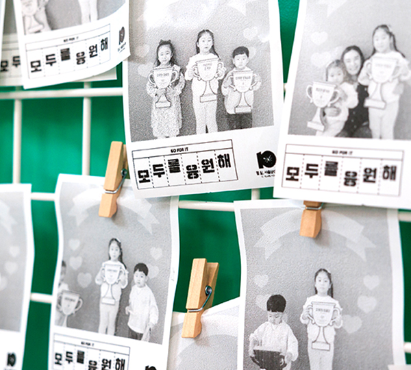 서로에게 칭찬과 격려의 트로피를 선물하고 기념사진을 찍어요.