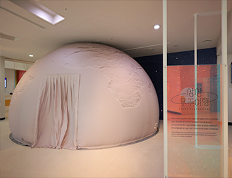 地球の形をしたドームスクリーンで宇宙を探検し、想像力と好奇心を養う展示です。
