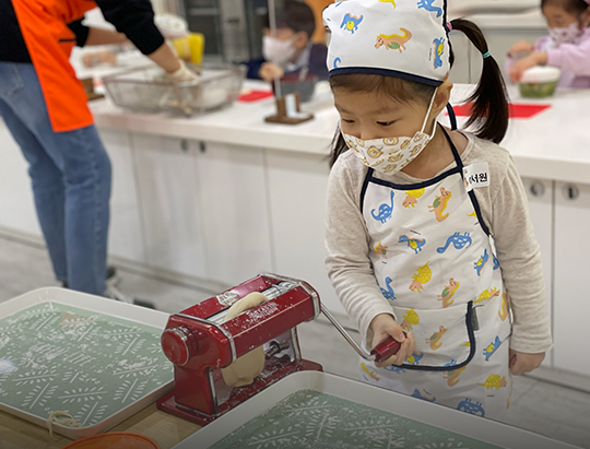 楽しく料理する過程を通して文化と芸術、数学と科学の概念はもちろん、食べ物に関する様々な情報を学び食事マナーも身につけるなど、達成感を味わえるプログラムです。